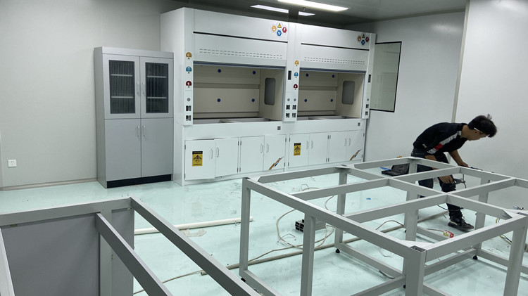 這邊是另外一個房間的通風柜和鋼木實驗臺再安裝,由于現場安裝圖片很多,只能發部分給客戶參考